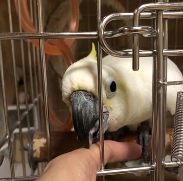 クックちゃんの里親になってひと月経ちました。 おかげさまでクックちゃん、先住鳥たち、