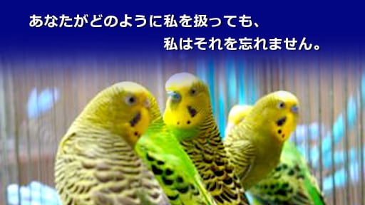 私を叩く前に、私にはくちばしがあってあなたの手の骨をたやすく咬み砕いてしまうこともできるということを思い出してください。でも私は噛みません。