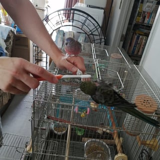 珊瑚(元もんぺ)ちゃん@アキクサインコ