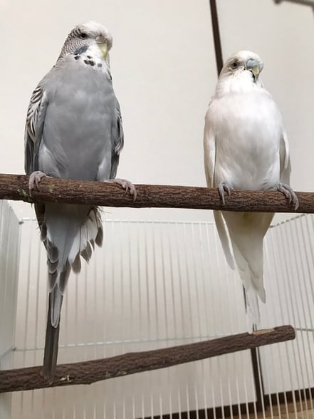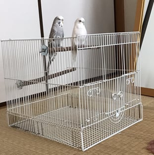 先住のジャンボともコザクラとも仲は良くありませんが三羽で一緒に鳴いたり、隣にジャンボがいても少しだけ距離を置いて枝にとまったりしています。
