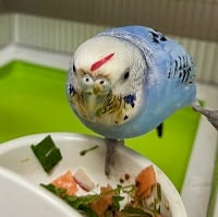 のりたん、先住セキセイ和の行動をガン見、真似っこしてすっかり我が家のペースに馴染んだようです。