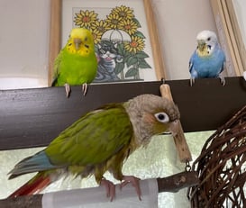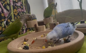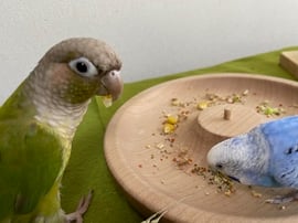 ウロコインコの友とも程よい距離感で、お互いをリスペクトしてい