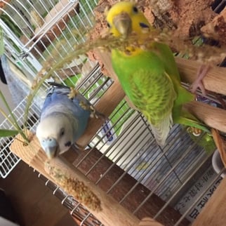 我が家に来た当初、のりたんは先住セキセイの和ちゃんにくっつい