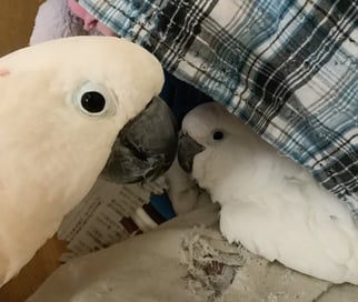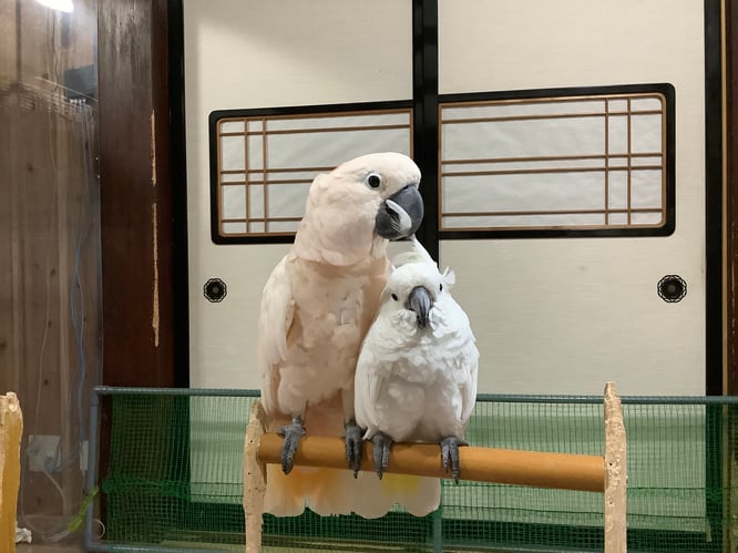 今では先住の雪音@タイハクオウムとすっかり仲良くなり、立派な仲良し夫婦です♪