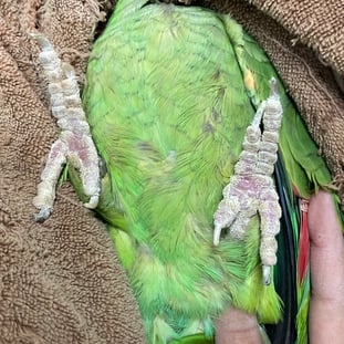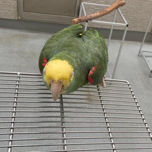 足の握力が弱くなっているため、負担軽減のため止まり木に医療用テープ(ヴェトラップ)を巻いています。