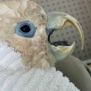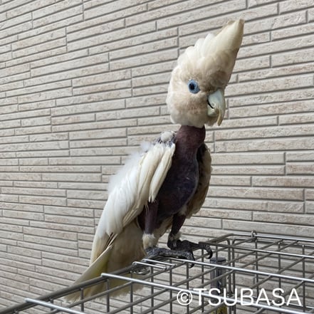 ※24年6月現在、顔周りや風切り羽の一部が黒ずんでいますが、これは前の飼い主様がヘビースモーカーであったり、以前まで暮らしてきたケージの汚れや食べ物の色によるものです。