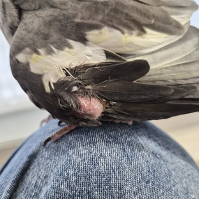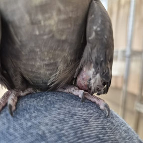 腫瘍のせいか翼が重くて飛ぶことはできません。