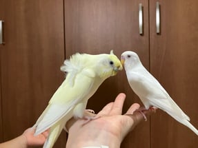 (左)相方のパルム(羽衣)とは大の仲良しです。どちらかというとパピコがグイグイ絡みに行っていますが(笑)