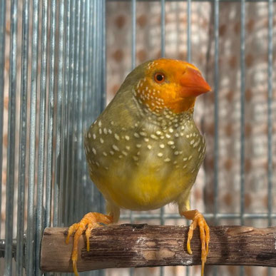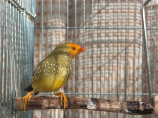 怖がりな鳥さんなので人が正面に来るとケージの奥に張り付いてしまうことがあります。