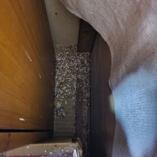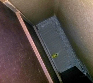 環境としては鳥達の好き放題という感じでタンスの上には大きな穴、ここも巣のように使っていたのではないでしょうか、タンスの裏も見ましたが壁紙をはがし巣材のようにしていて大きな巣状態。実際にペアの子が入り込んでいました。