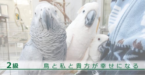 3級ではまずはご自分の鳥さんの健康を守り、人も鳥も幸せになることがテーマです。